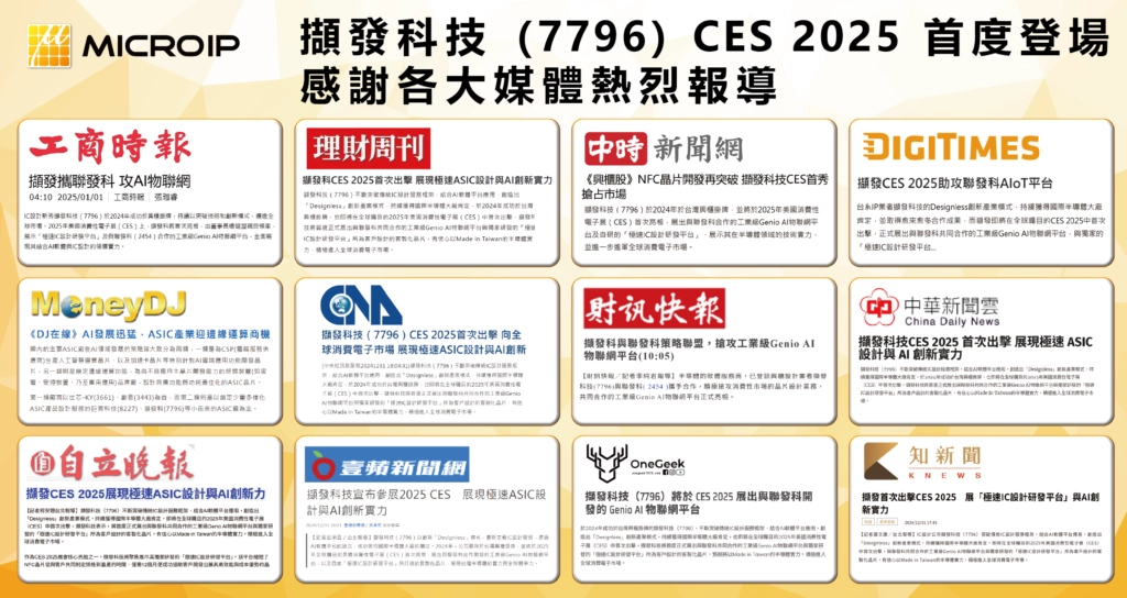 MICROIP (Taiwan Stock Ticker: 7796) is making waves ahead of its CES 2025 debut, with over 30 international media outlets covering our groundbreaking innovations. Our industrial-grade Genio AI IoT platform, developed with MediaTek and featuring TSMC's 6nm NPU, addresses the market's demand for low-latency, high-performance solutions while redefining industrial automation standards.